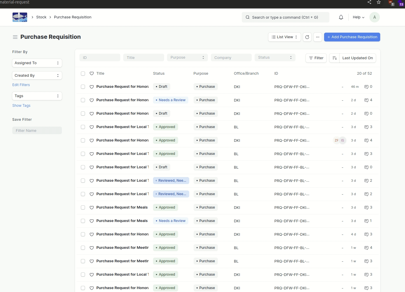 Purchase Requisition (PRQ)