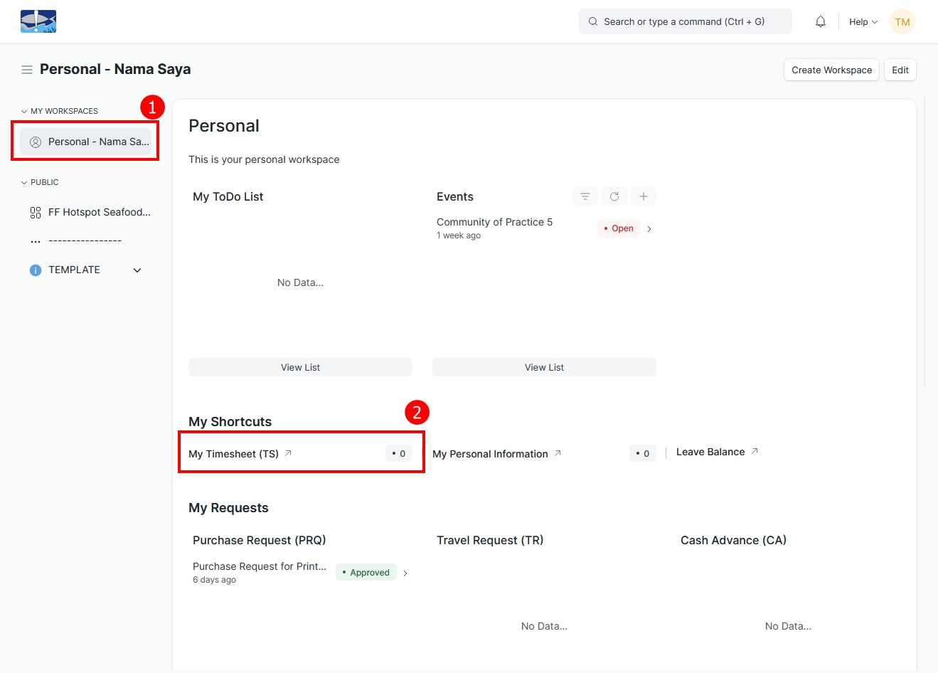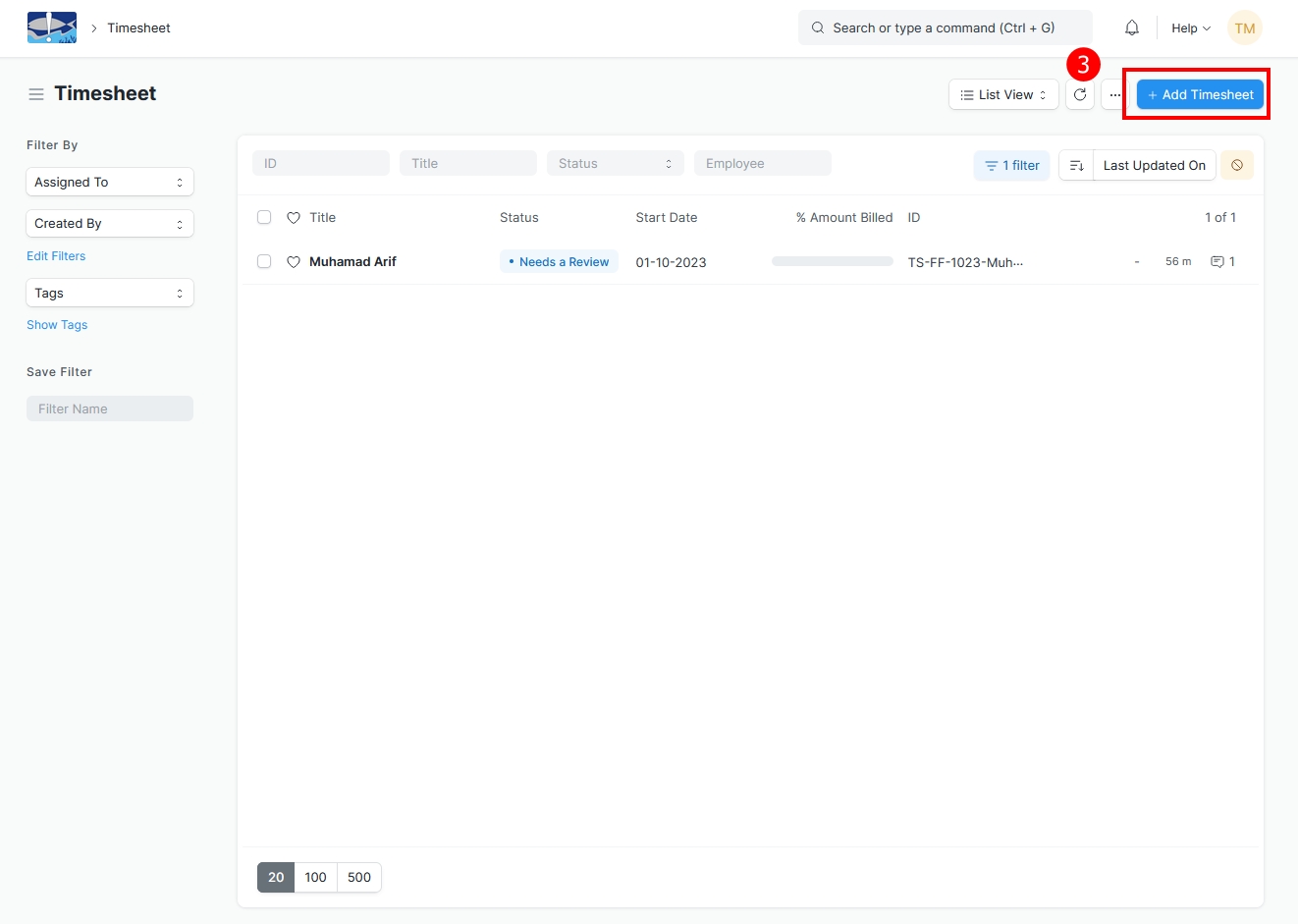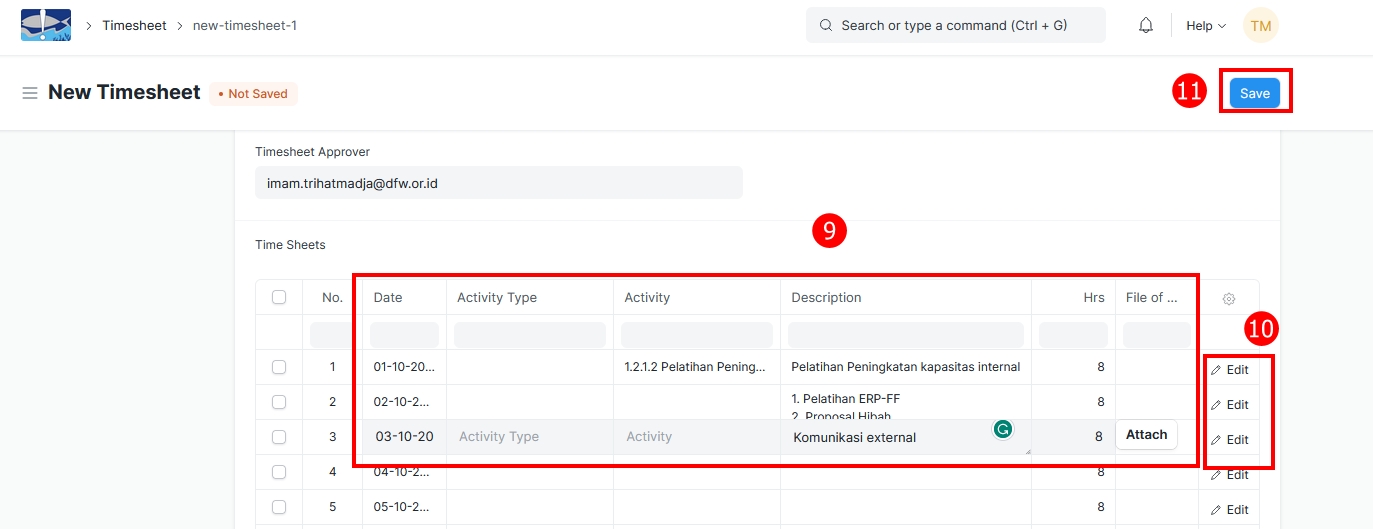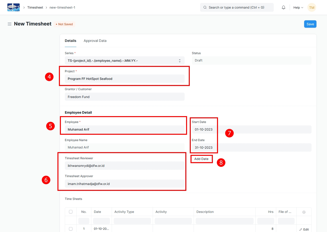 Fill information related to your timesheet (Project, Name of Employee, Reveiwer, Approver)